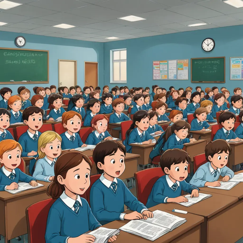أطفال في قاعة الإعلامية التابعة للمدرسة كرتوني